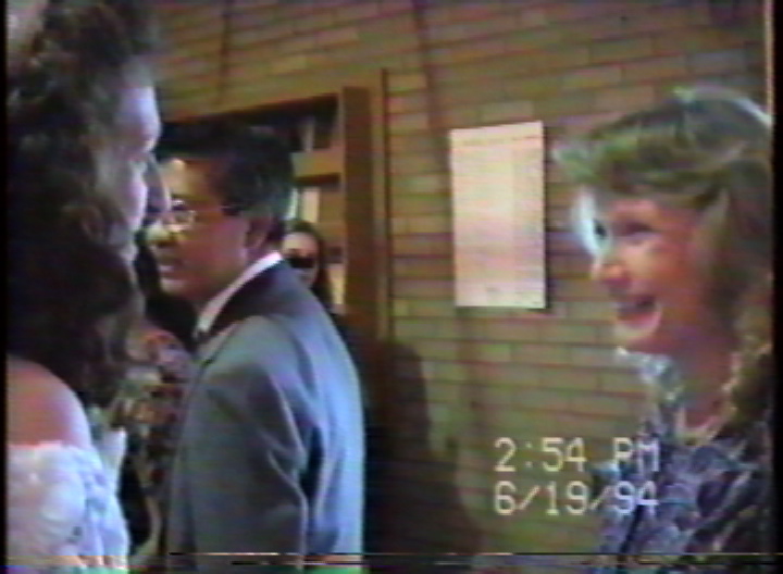Jeannine Kennedy congratulating Cheryl Van Epps-Fung after her wedding in St. Joseph's Church 6-19-1994. .mov format, 39 sec., 44MB