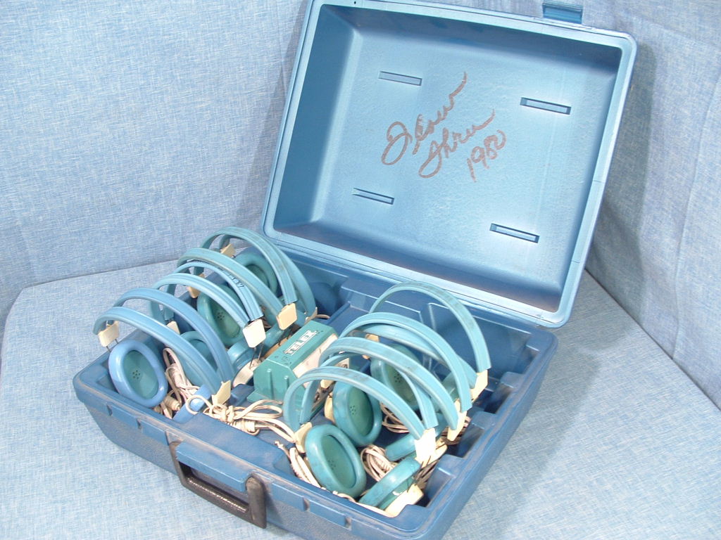 Headphones that plugged into a tape recorder to listen to foreign language cassette tapes (I think our model was tan or brown).