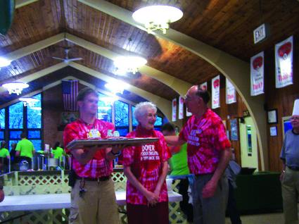 Camp Tippecanoe Director Scott Weigley presents Ann and Glen Groh with a cake during a recent ceremony. Courtesy Dover-New Philadelphia Times-Reporter http://www.timesreporter.com and Scott McCartney