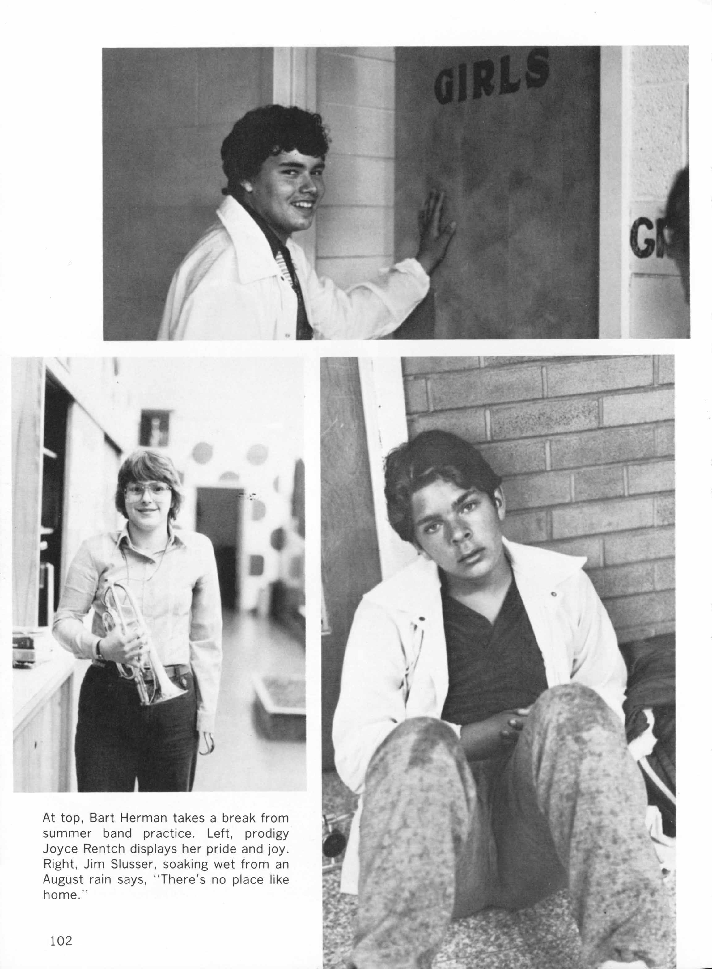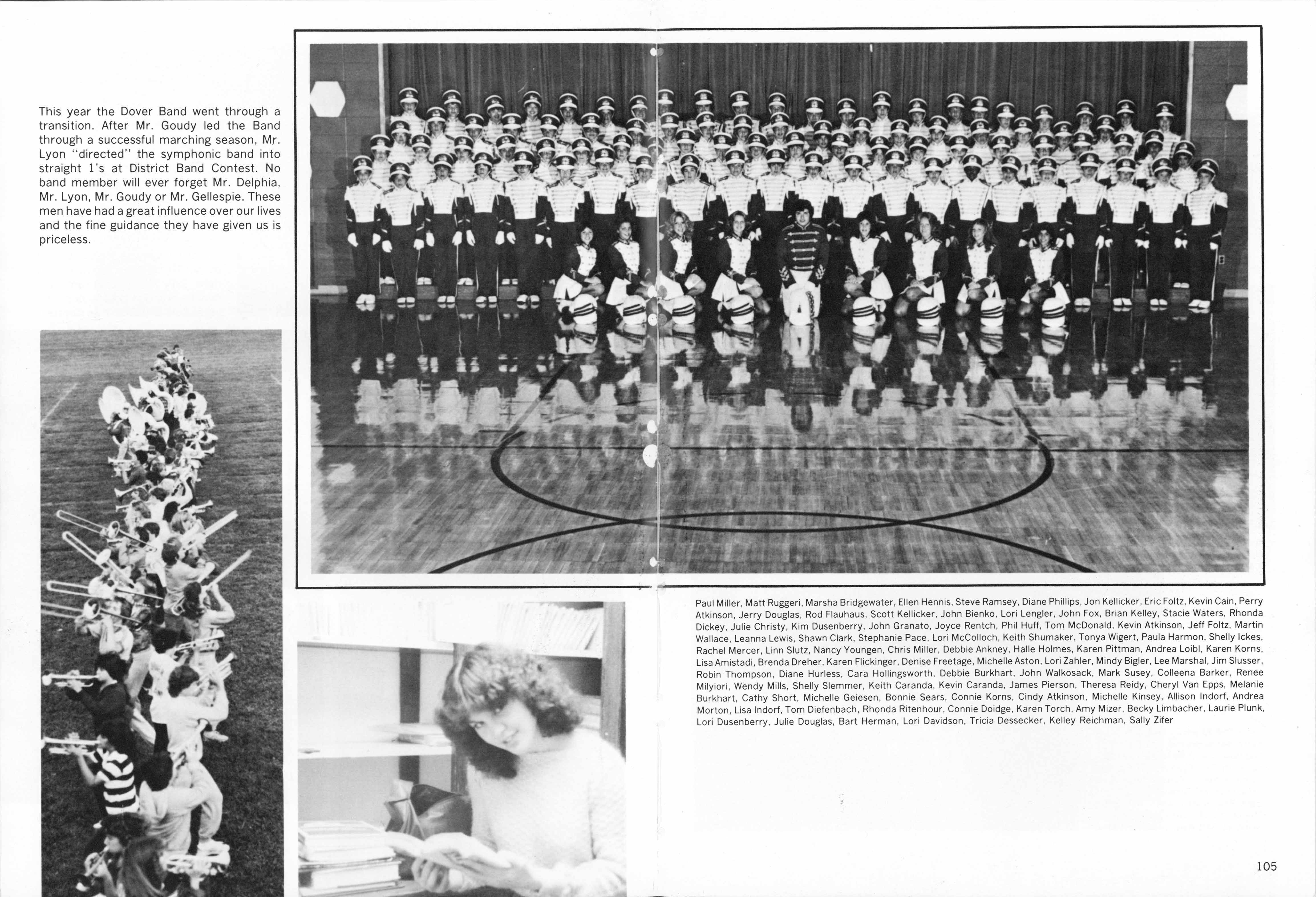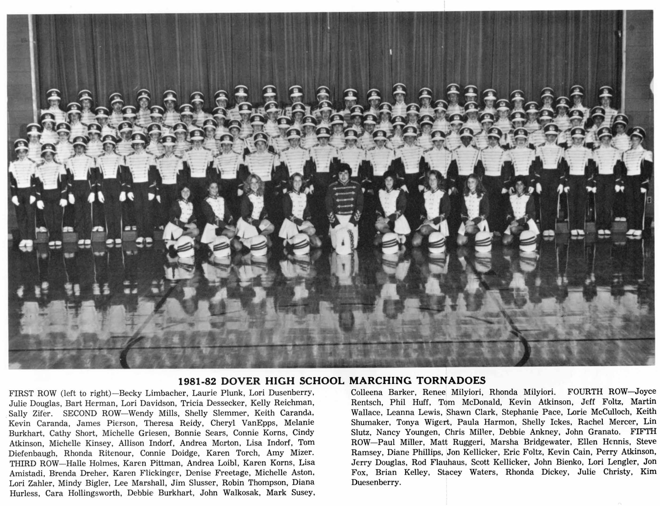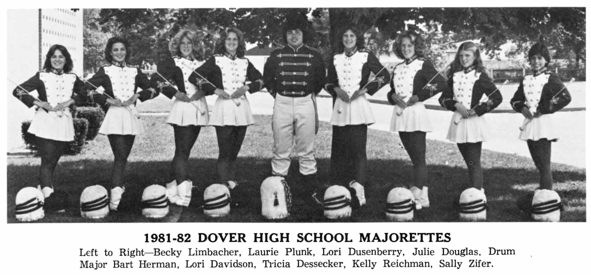 Majorettes Becky Limbacher, Laurie Plunk, Lori Dusenberry, Julie Douglas, Drum Major Bart Herman, Majorettes Lori Davidson, Tricia Dessecker, Kelly Reichman, Sally Zifer