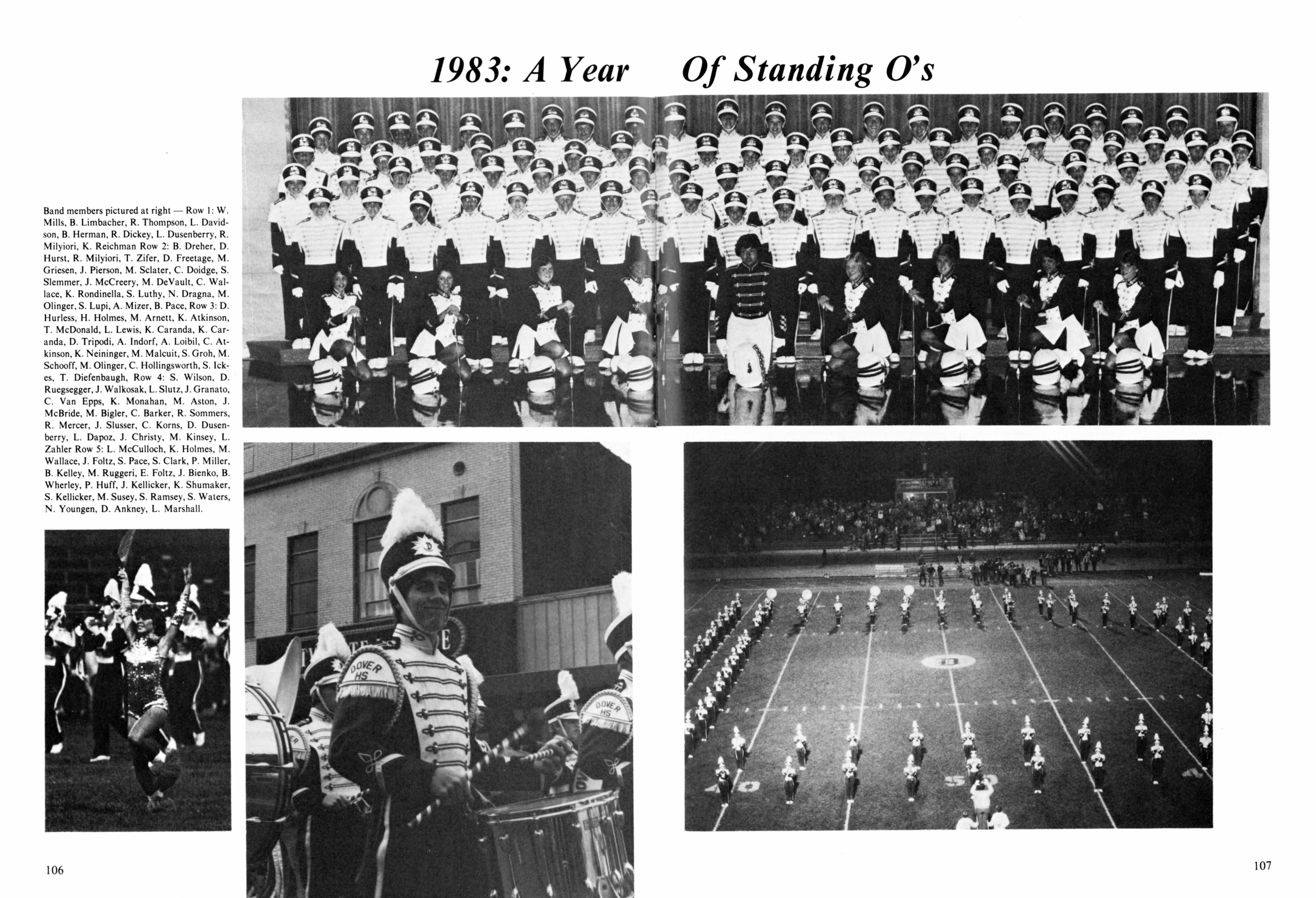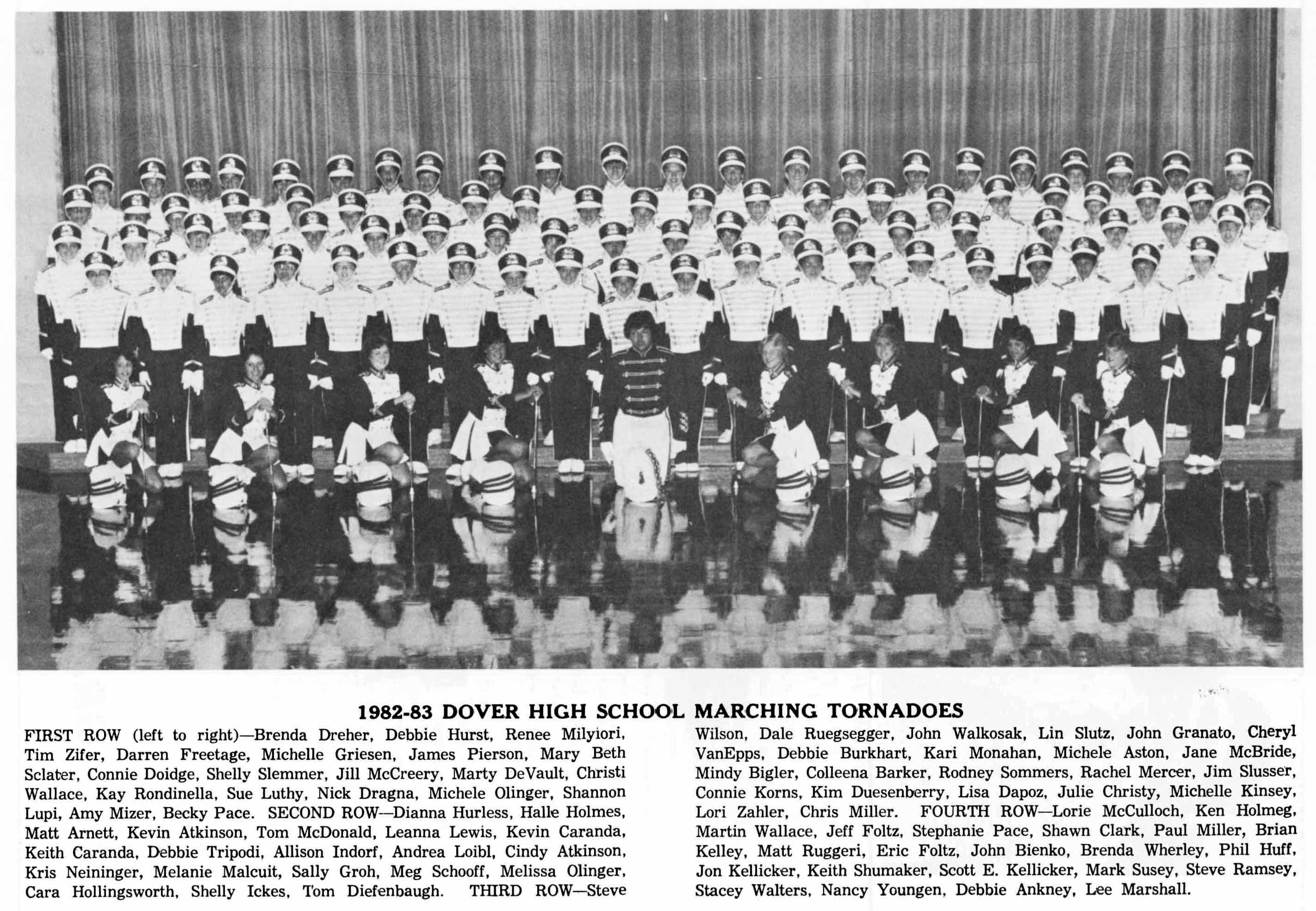 Wendy Mills, Becky Limbacher, Robin Thompson, Lori Davidson, Drum Major Bart Herman, Rhonda Dickey, Lori Dusenberry, Rhonda Milyiori, Kelly Reichman