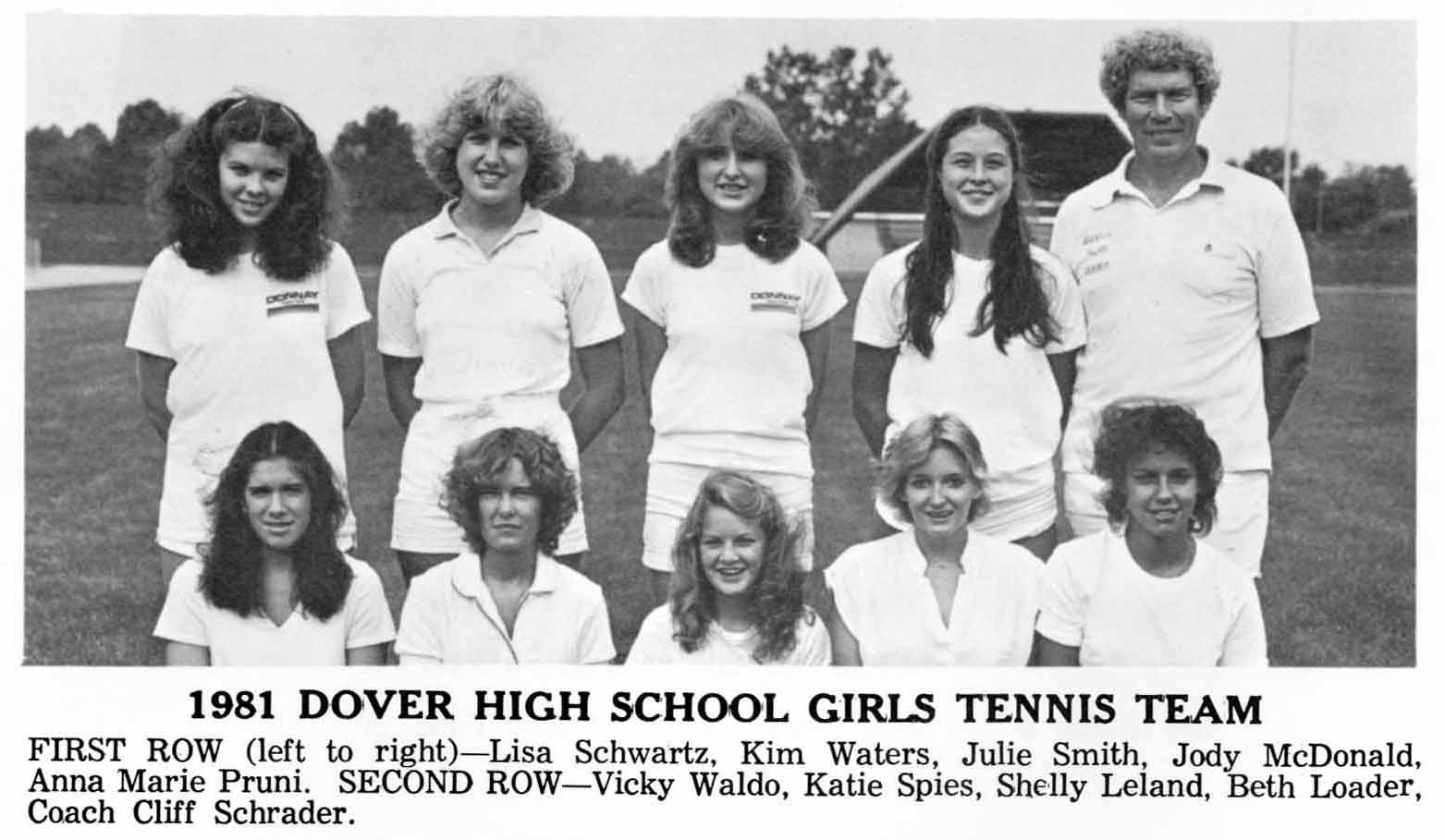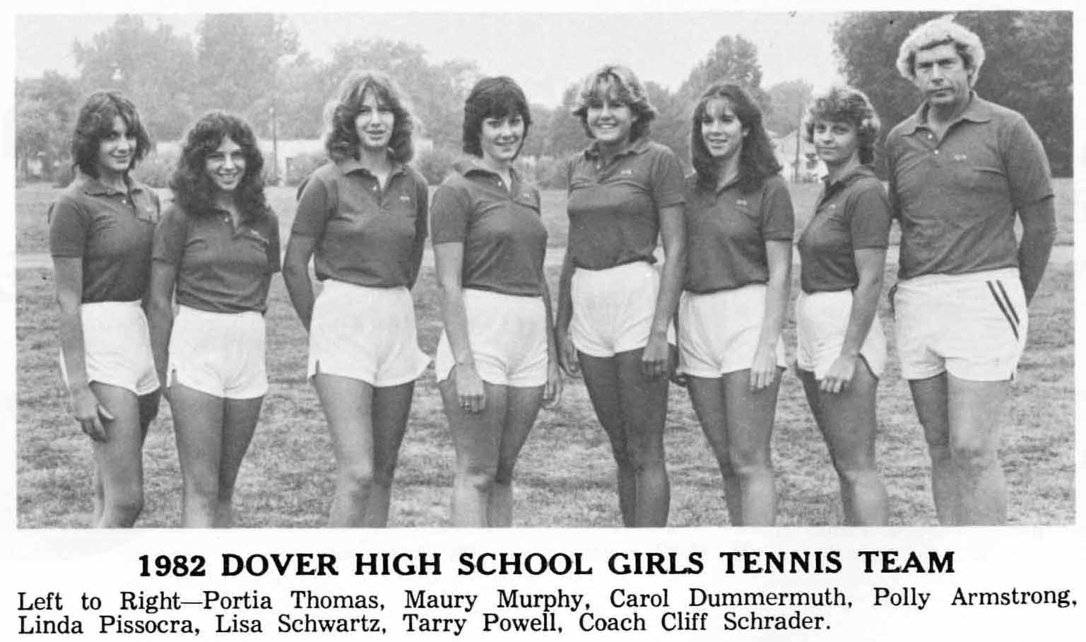 Portia Thomas, Maury Murphy, Carol Dummermuth, Polly Armstrong, Linda Pissocra, Lisa Schwartz, Terry Powell, Coach Cliff Schrader