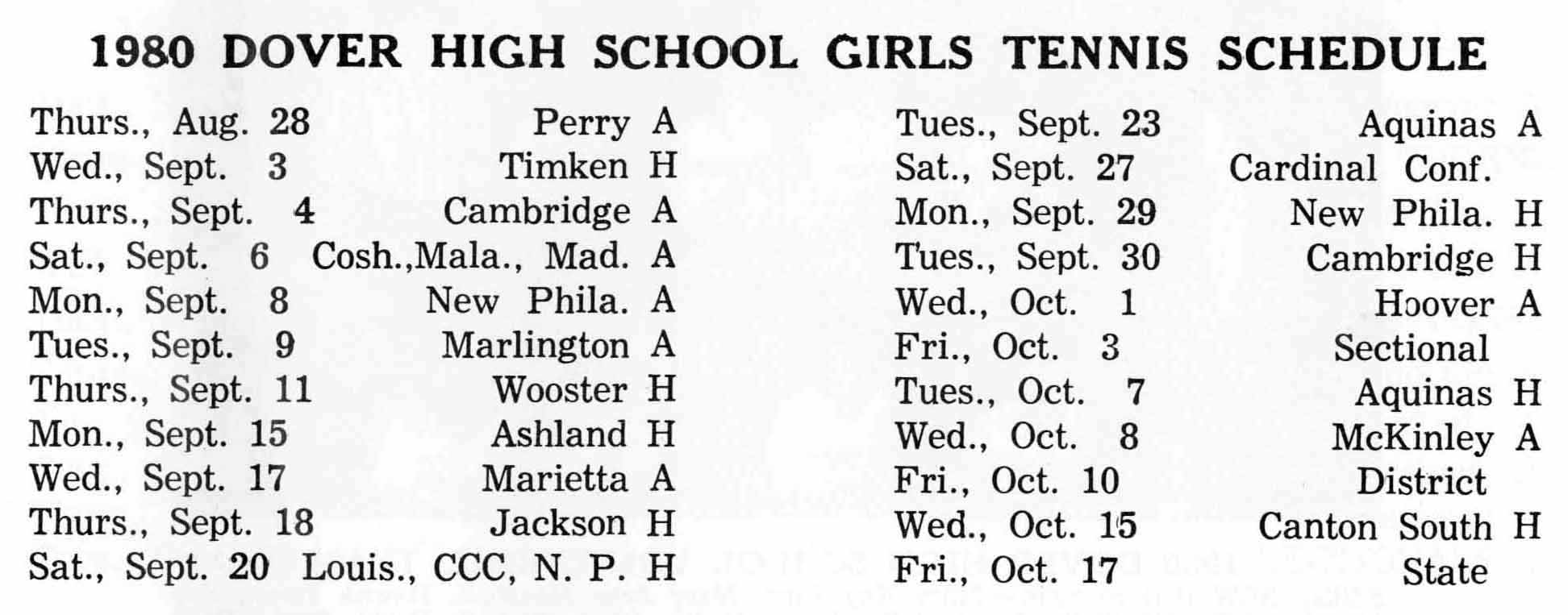 Girls Varsity Tennis Schedule 1980