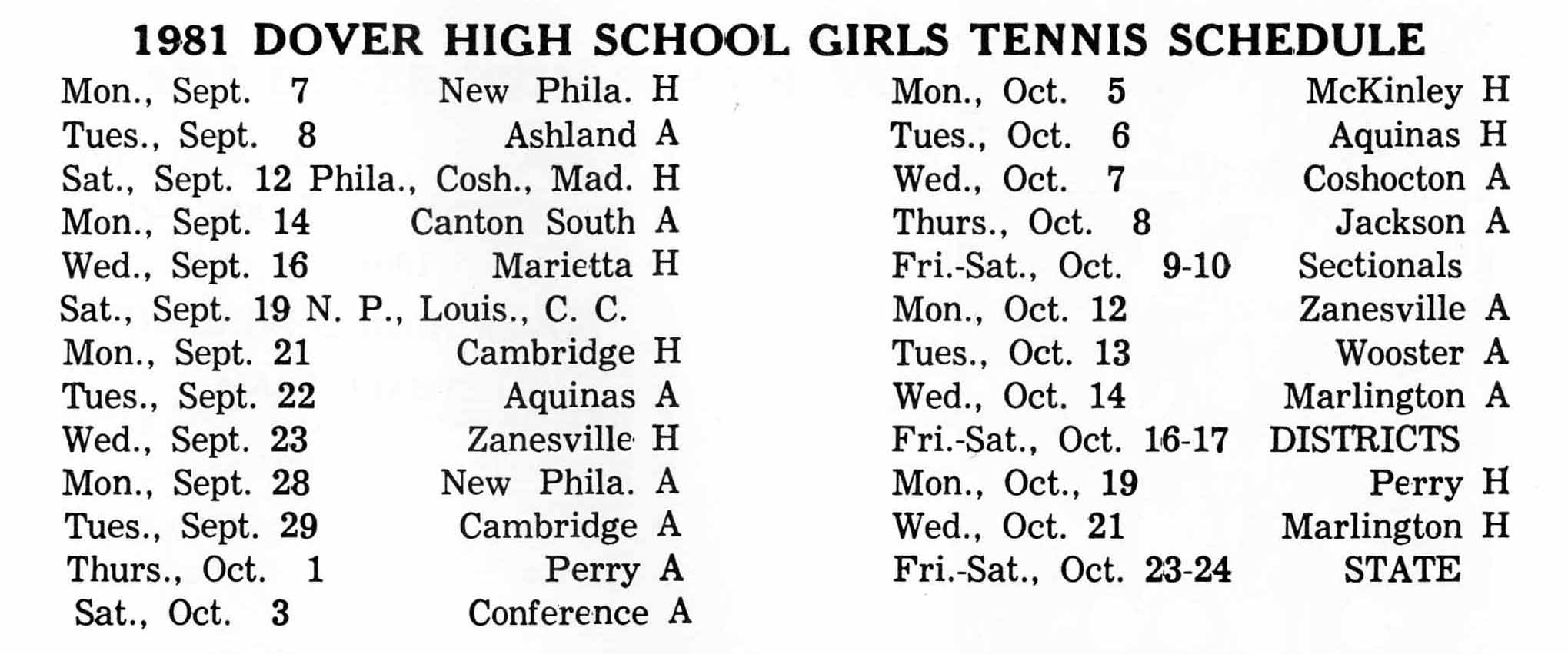 Girls Varsity Tennis Schedule 1981