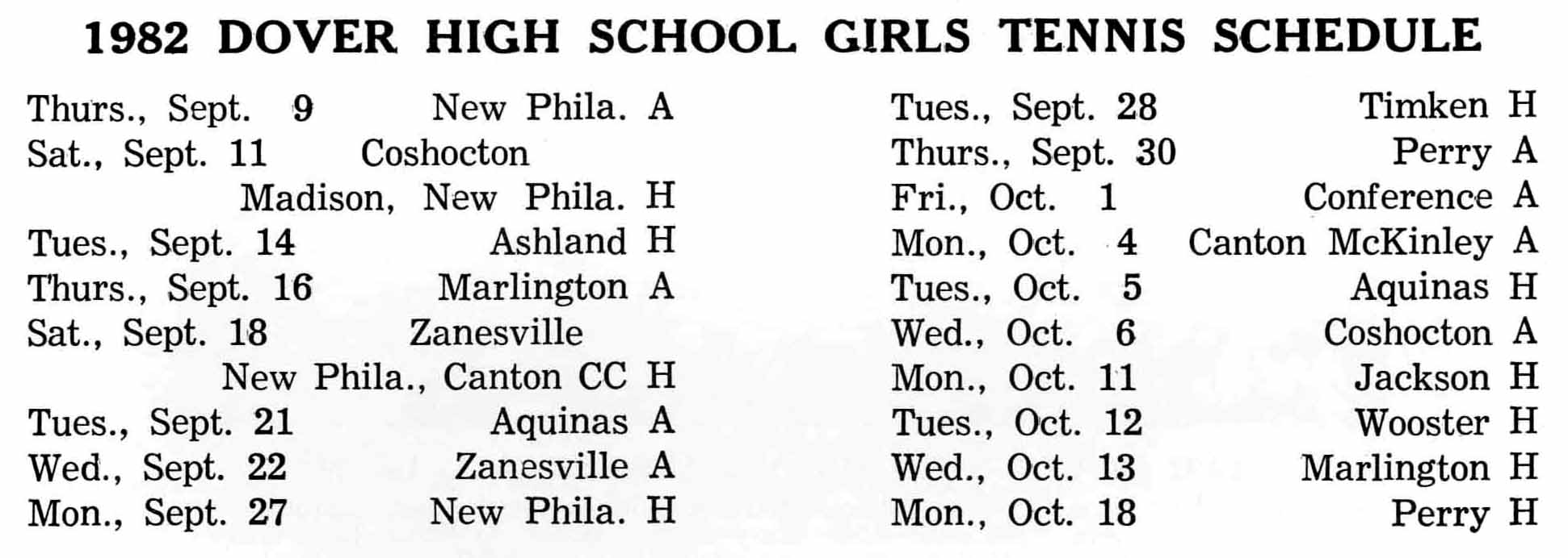 Girls Varsity Tennis Schedule 1982
