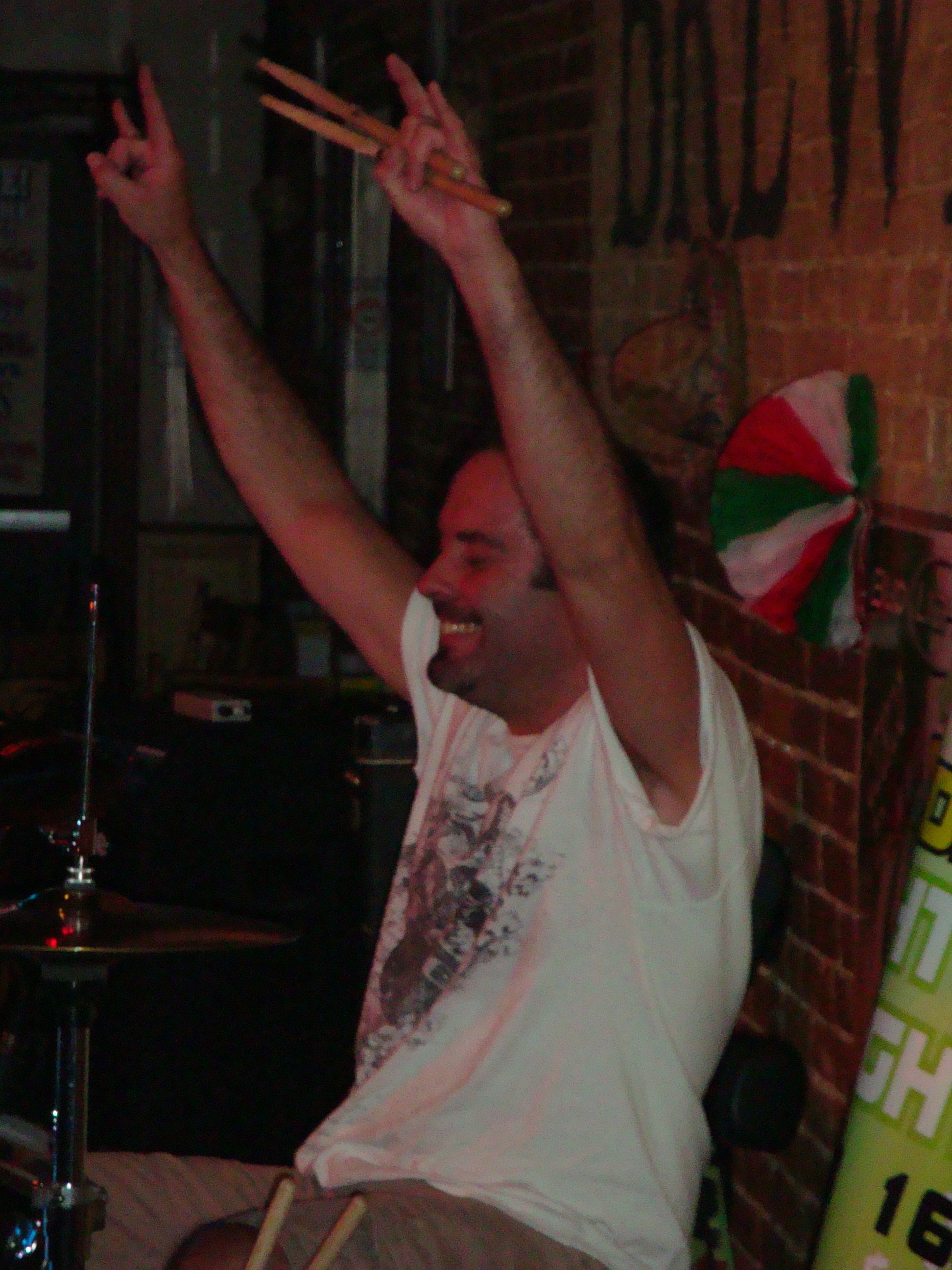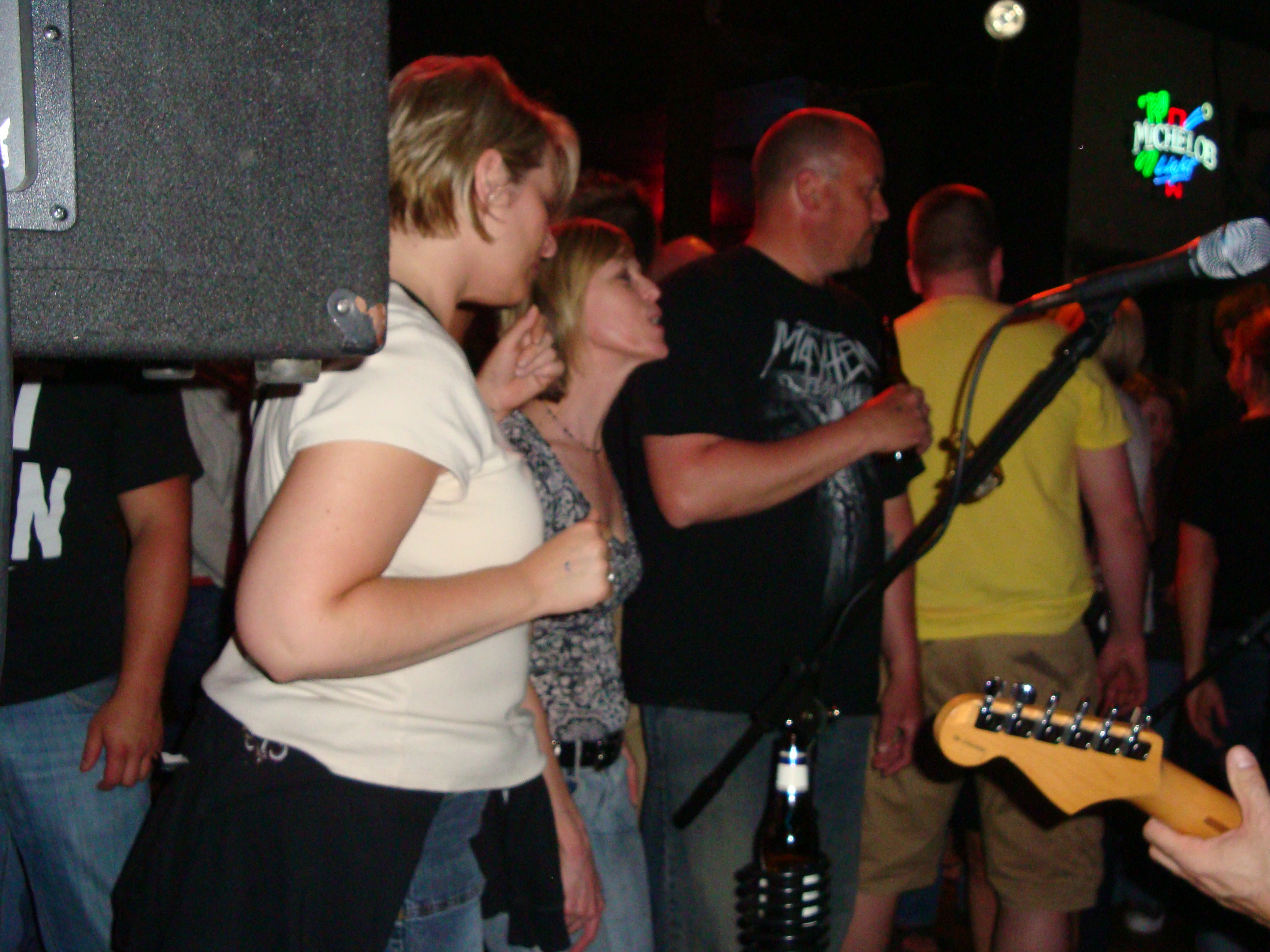 Christine Austin Metzger, wife of bassist and vocalist Steve, rocking out