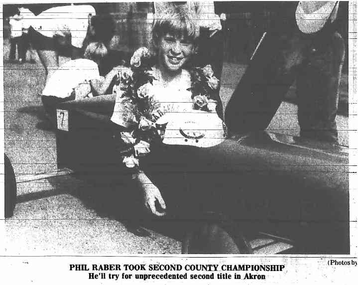 "Raber gets 2nd Derby title shot: Greg Clum wins kit car division" 6-27-1977 Courtesy Dover-New Philadelphia Times-Reporter http://www.timesreporter.com ) (Philip Raber is the son of Mr. & Mrs. Ernest Raber)