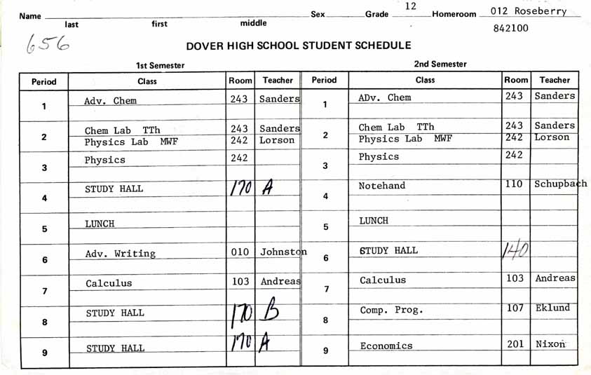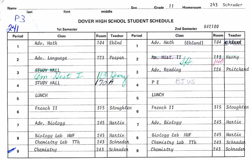 Sample Class Schedules