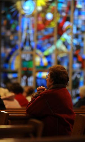 Irene Bienko of Dover kneels in prayer before an Ash Wednesday service at St. JosephÕs Church at Dover. Ash Wednesday, in the Western Christian calendar, is the first day of Lent and derives its name from the practice of placing ashes on the foreheads of adherents as a sign of repentance. 2-17-2010 Courtesy Dover-New Philadelphia Times-Reporter http://www.timesreporter.com