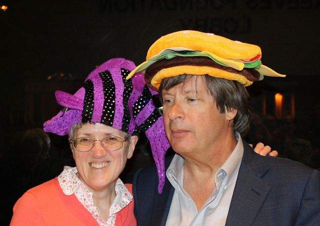 2) Teri Stein in the fish hat Jerry Marlowe brought for Dave Barry to wear. You can tell by the way Dave is looking off camera at Jerry that Dave's not too happy that he's not wearing the coveted fish hat. Photos by Joe Stein