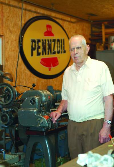 Dick Hollinger of Dover shows one of the machines in his workshop. Photo Courtesy Rachael Ramos/Dover-New Philadelphia Times-Reporter http://www.timesreporter.com
