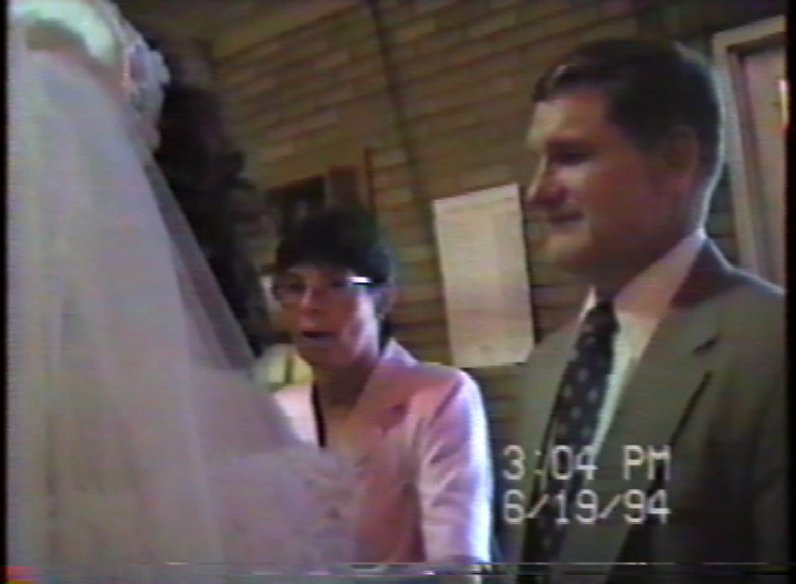 Tom and Sue Redman, parents of former classmate Julie, congratulating Cheryl Van Epps-Fung after her wedding in St. Joseph's Church 6-19-1994. .mov format, 43 sec., 42.2MB