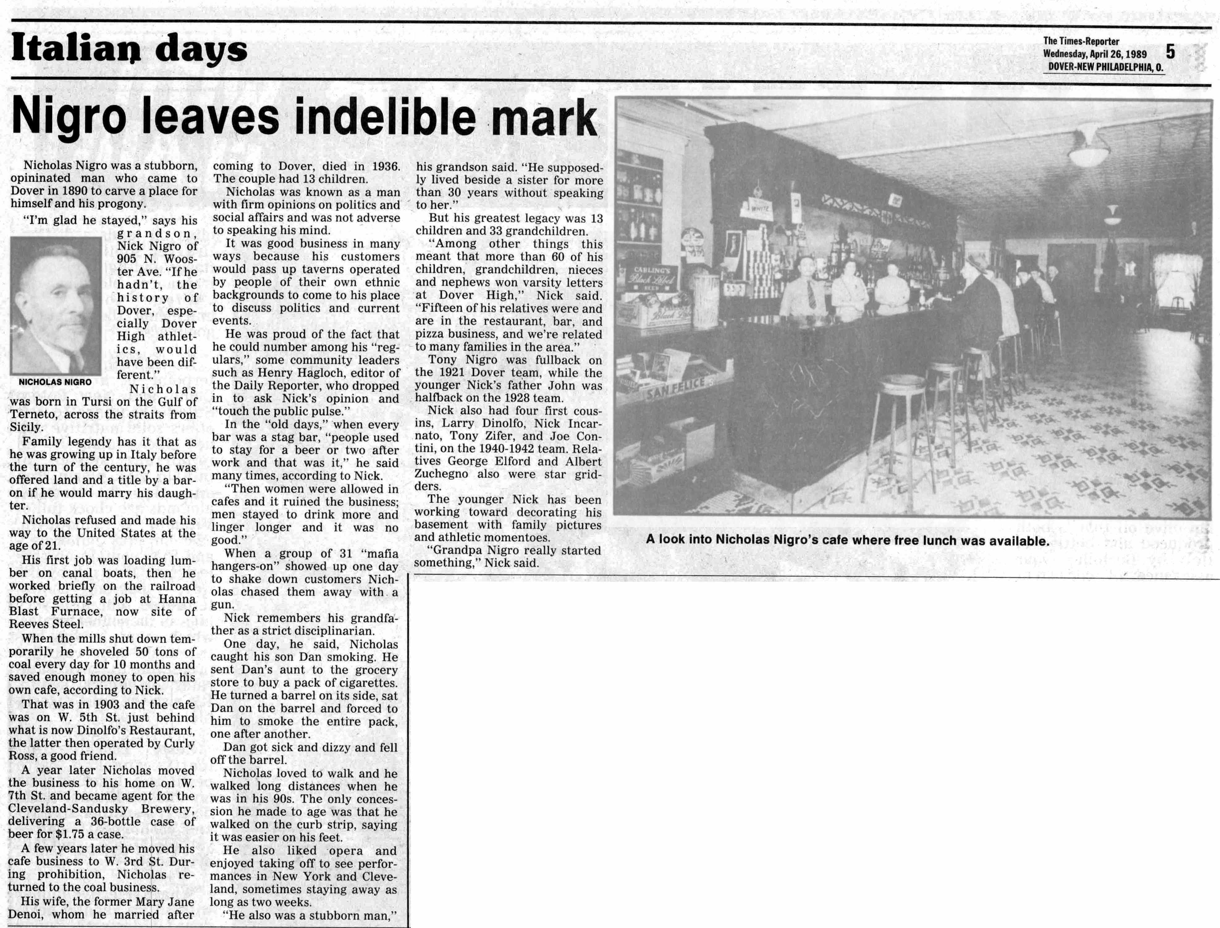 "Nigro leaves indelible mark" 4-26-1989 Courtesy Dover-New Philadelphia Times-Reporter http://www.timesreporter.com