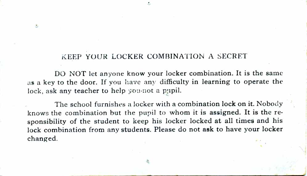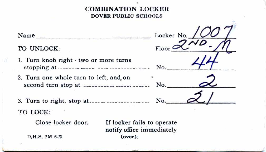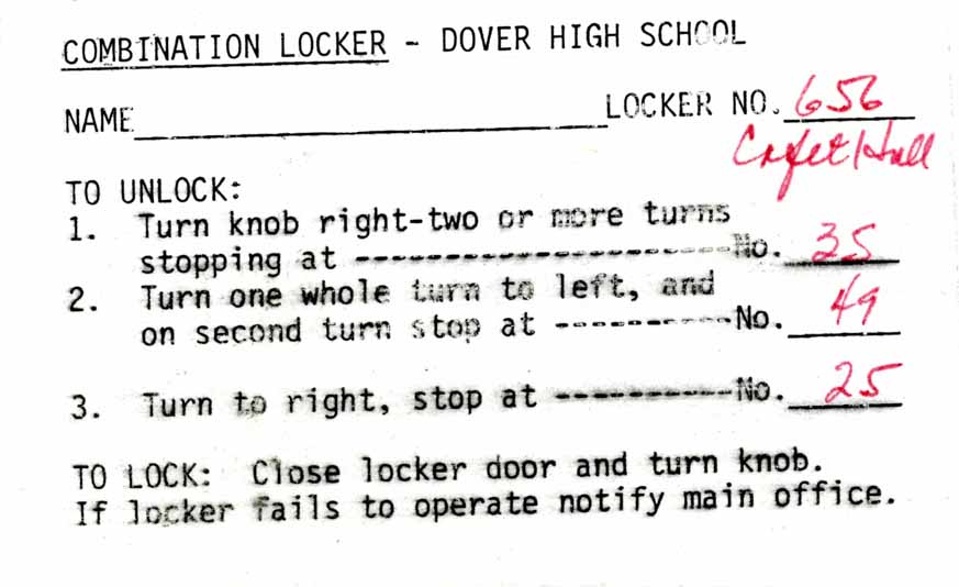 A DHS locker lock that some thieves in the DHS Class of 1957 stole